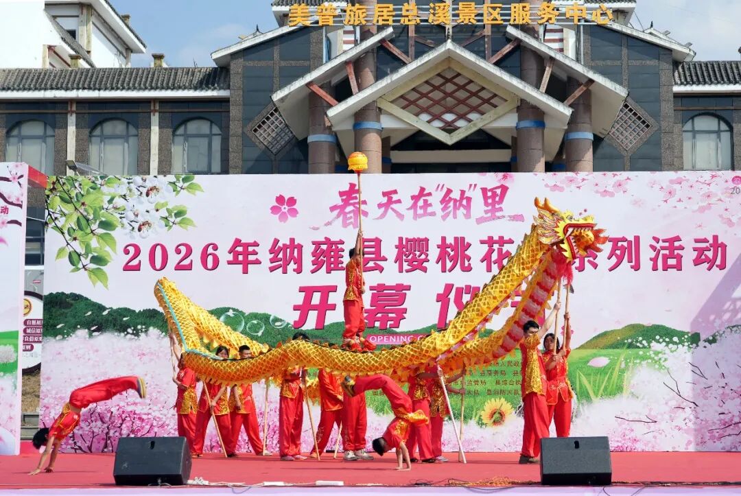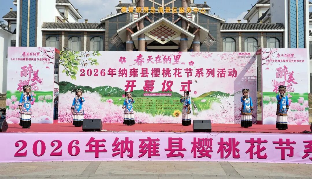 2月26日,2026年纳雍县樱桃花节开幕式在厍东关乡总溪河游客接待中心广场举行。各地游客齐聚河畔,共赏春日盛景,共品民族风情,共启纳雍文旅融合新篇章。