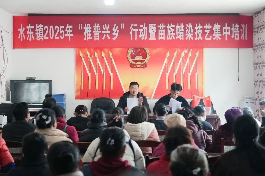 11月20日,水东镇松树坝社区新时代文明实践站内暖意融融,2025年水东镇“推普兴乡”行动暨苗族蜡染技艺集中培训正在进行。此次为期五天的培训以“推普+技艺+政策”深度融合模式,为辖区有汉语言障碍的少数民族群众送上“语言钥匙”与“技能锦囊”,为乡村振兴注入双重动能。