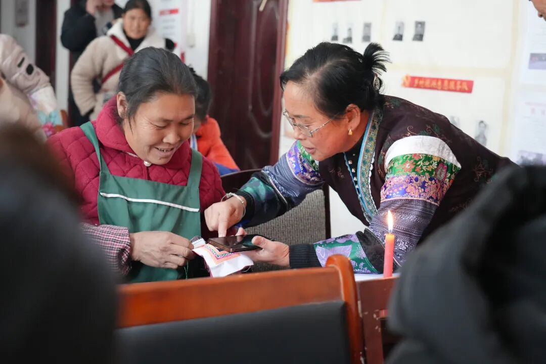 培训紧扣“以人为本、注重实效”“因地制宜、分类实施”原则,精准对接群众需求。通用语言培训环节,授课老师围绕《国家通用语言学习100句》核心内容,强化日常交流及蜡染产品推销、订单沟通等业务用语。同时配套“小手牵大手”“1帮1”“N帮1”结对帮学机制,借助双语广播常态化推送学习内容,让学员在沉浸式氛围中快速掌握实用表达。