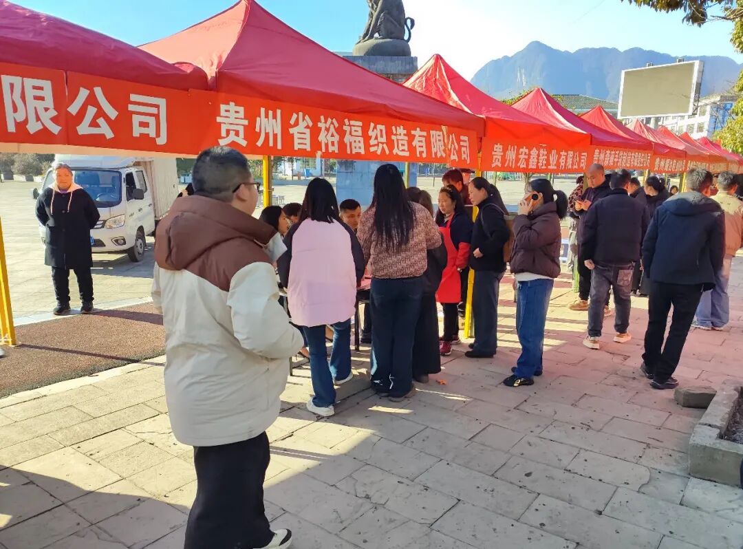 1月29日,恰逢勺窝镇赶集日,纳雍经开区12家企业联合在黄河社区文化广场招工,将1200余个优质岗位送到群众家门口。
