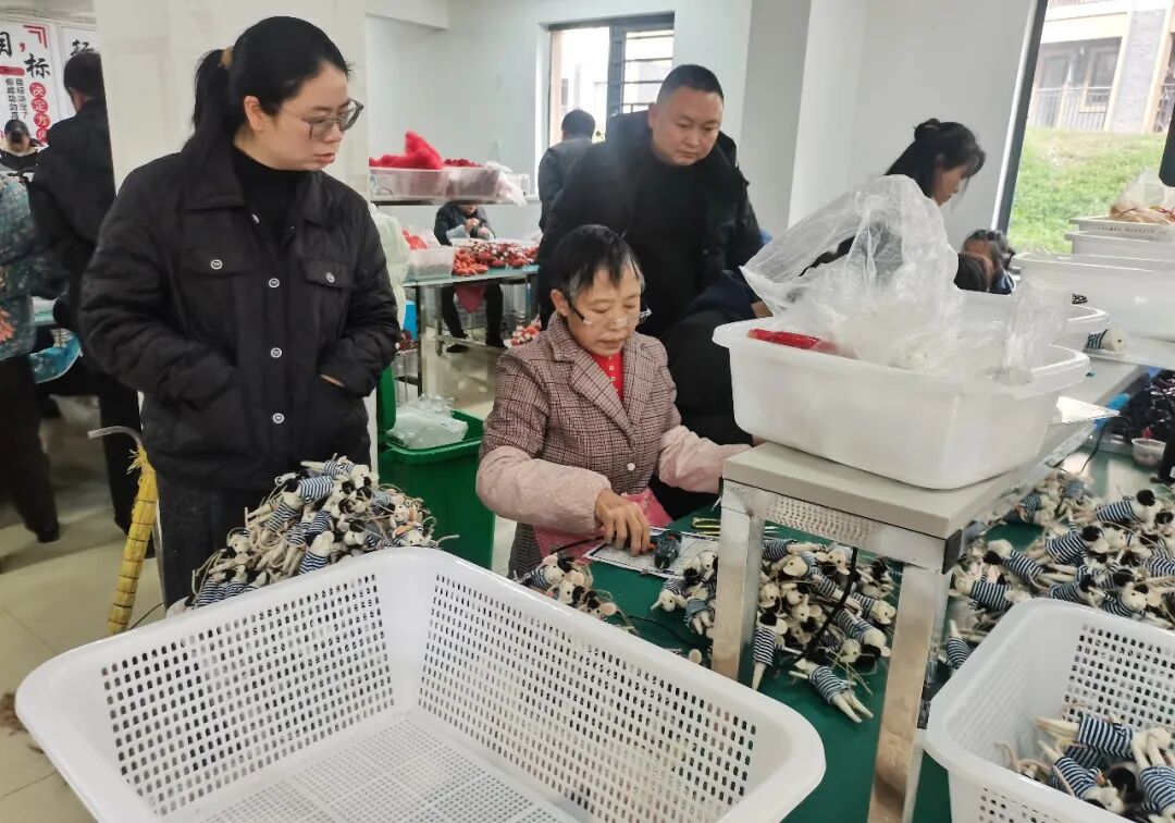 手工坊负责人详细介绍了生产流程、产品类型、薪资待遇及工作模式,车间内工人有条不紊开展手工加工,从零件组装到成品包装,各环节一目了然。参观群众兴趣浓厚,纷纷询问岗位要求和报名方式,“不用出远门,既能照顾家里又能赚钱,太适合我们了。”参观群众张文感慨道。