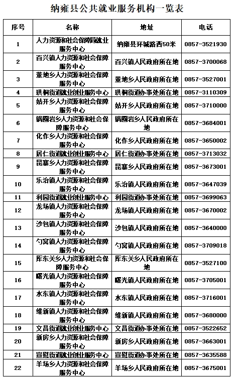 纳雍县人力资源和社会保障部门竭诚为广大务工朋友提供就业技能培训、政策咨询、创业指导、岗位推荐等系列服务。