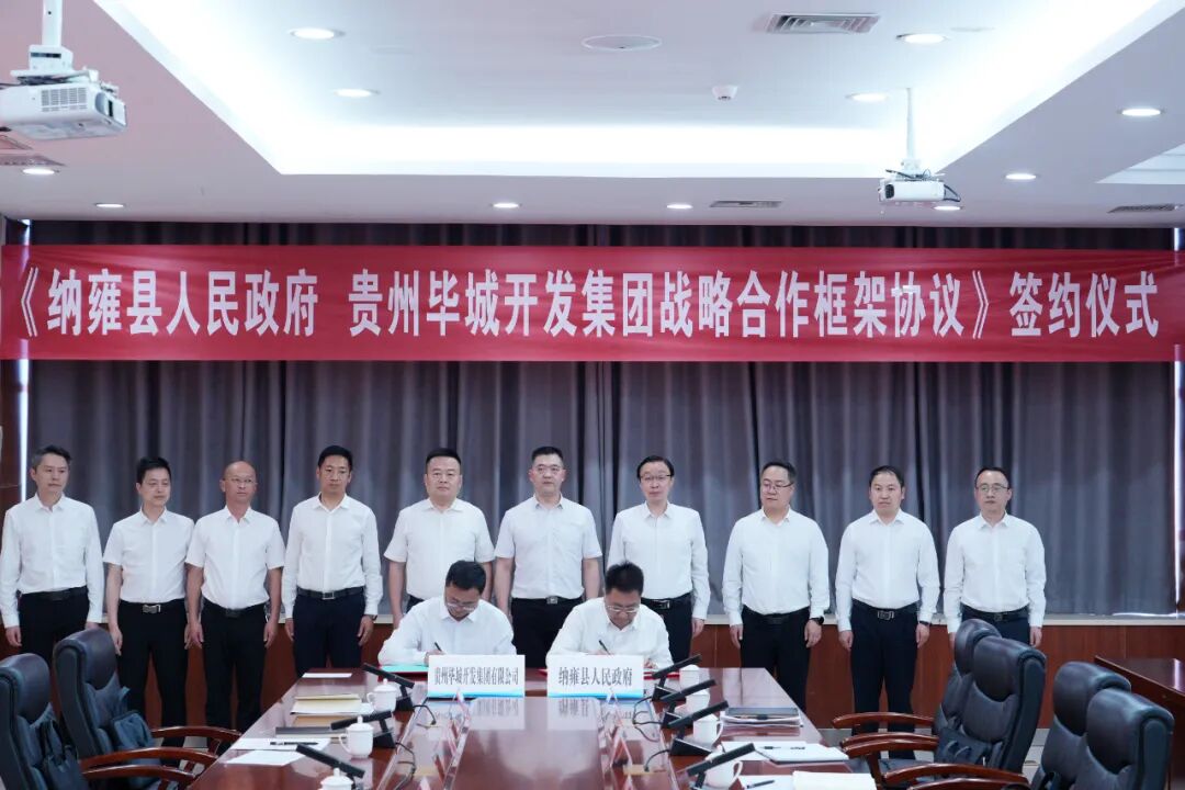 5月12日,我县与贵州毕城开发集团在纳雍座谈,双方签署战略合作框架协议。纳雍县委书记敖登雪,毕节市国资委党委书记、主任万勇,纳雍县委副书记、县长禄斌,毕节市国资委副主任李光,贵州毕城开发集团党委书记、董事长周大国,贵州毕城开发集团党委副书记、副董事长、总经理鲁雪阳出席并见证签约。县委常委、常务副县长伍林龙主持。